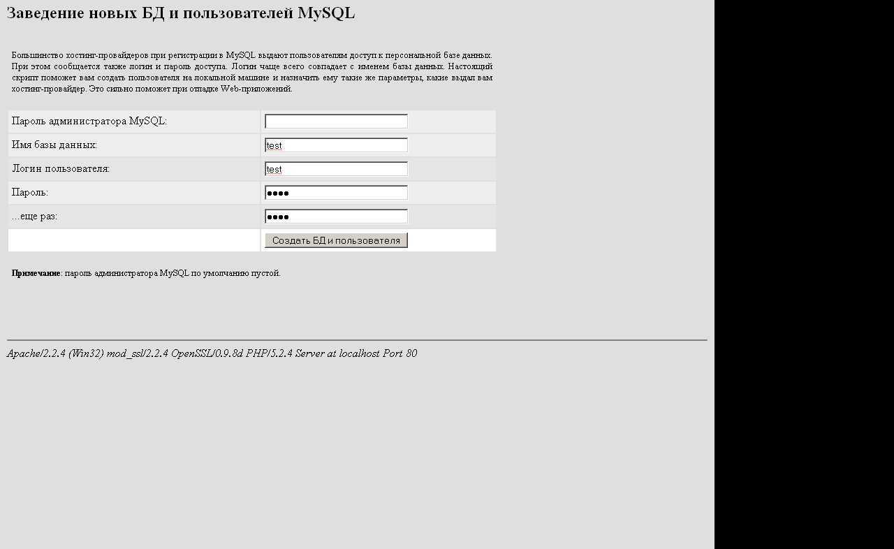 Отлично, первый шаг сделан! Теперь создадим базу данных, что бы Joomla могла записать в неё необходимые данные по ходу своей установки. База данных нужна для хранения всей информации на сайте (тексты, настройки и т.д).