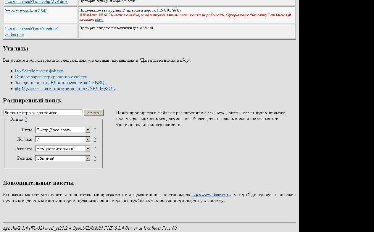 Всё. Денвер установлен. Появится окошко браузера, сообщающее об этом.