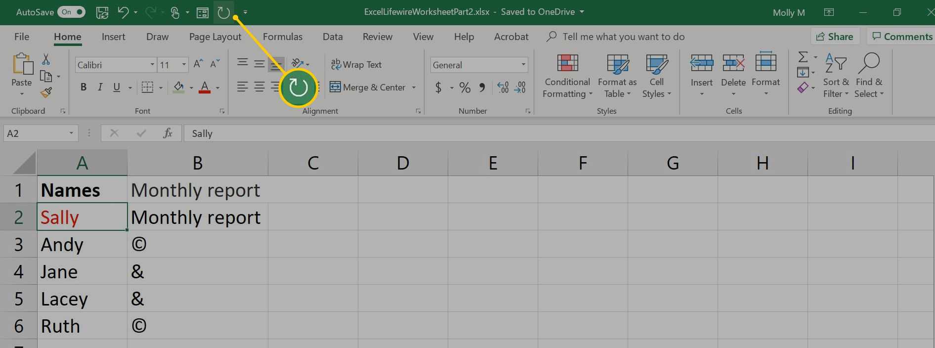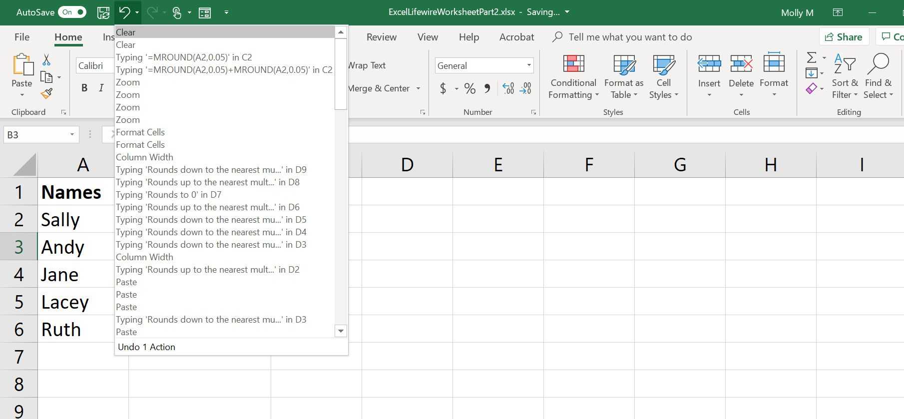 И наоборот, отмена изменения цвета в A1 активирует повторить вариант, но он отключает повторение. Следовательно, вы можете повторить изменение цвета в ячейка A1, но вы не можете повторить это в другой ячейке.