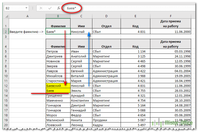 Обратите внимание, что при этом предполагается, что наш перечень отсортирован по столбцу поиска