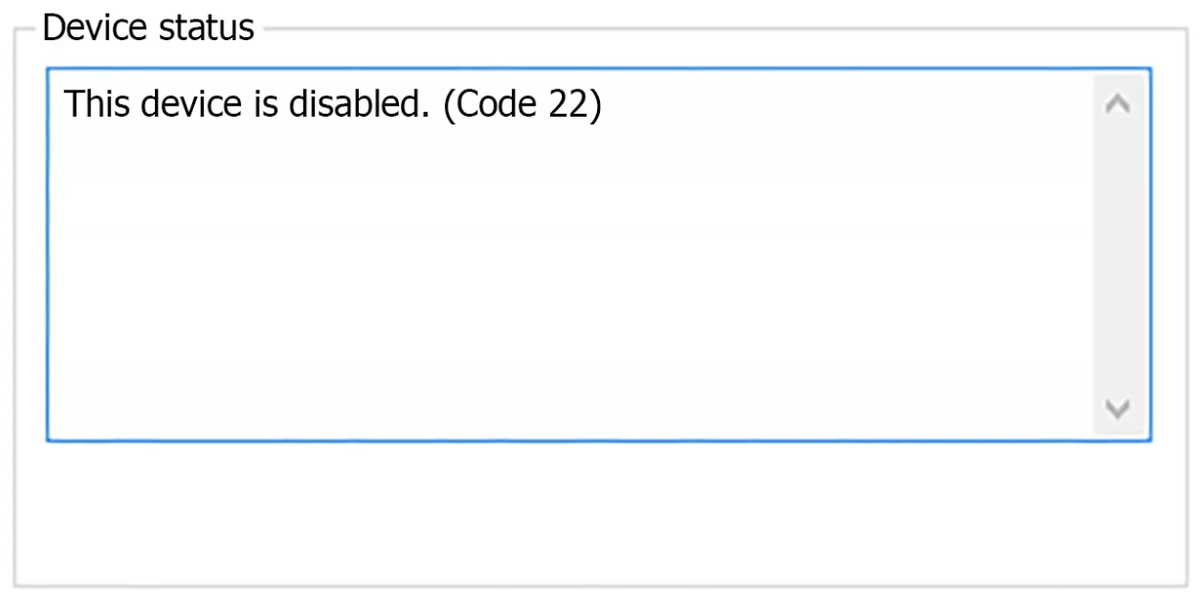 Код ошибки диспетчера устройств 22 означает, что устройство было вручную отключено вами или другими лицами. Но, если Windows принудительно отключит это устройство из-за нехватки системных ресурсов, эта ошибка также может произойти.