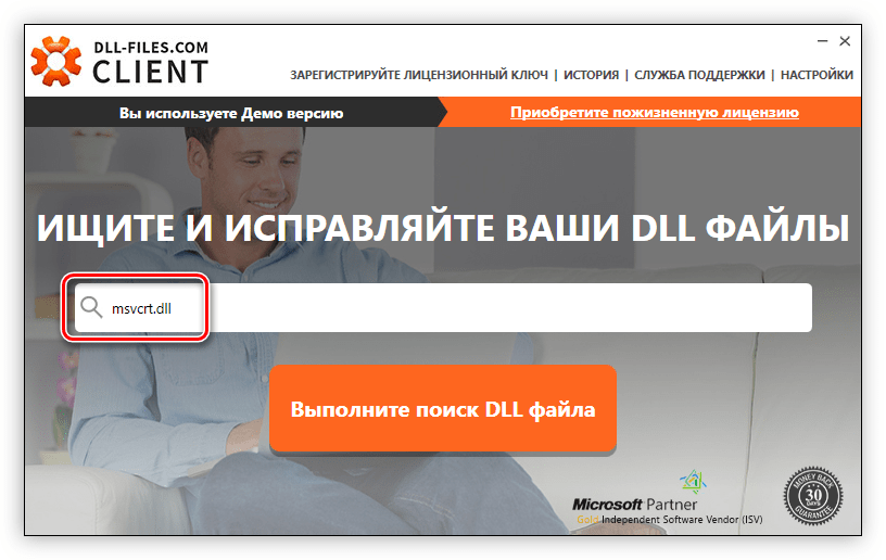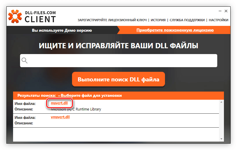 Можно выделить три легких способа решения проблемы с отсутствием библиотеки msvcrt.dll. Это использование специальной программы, установка пакета, в котором хранится эта библиотека, и ручная ее инсталляция в систему. Сейчас обо всем подробно будет рассказано.