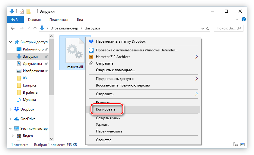 - Нажмите по нему ПКМ и выберите пункт «Копировать». Также для этого можно использовать горячие клавиши Ctrl+C.