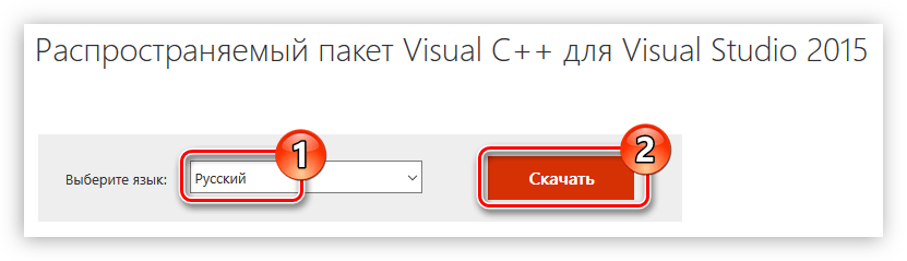 Начнется загрузка инсталлятора Microsoft Visual C++ на компьютер. После ее окончания запустите скачанный файл и выполните следующее: