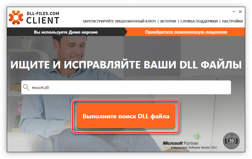 При помощи этой программы можно за несколько минут избавиться от ошибки «msvcrt.dll не найден», для этого сделайте следующее: