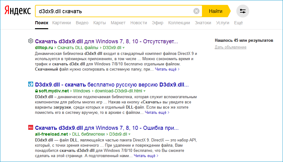 - почти все ресурсы, предлагающие бесплатно загрузить dll-библиотеки, лукавят, выдавая за необходимые файлы вредоносное ПО, отправляя пользователя на файлообменники с рекламой и т. д.;