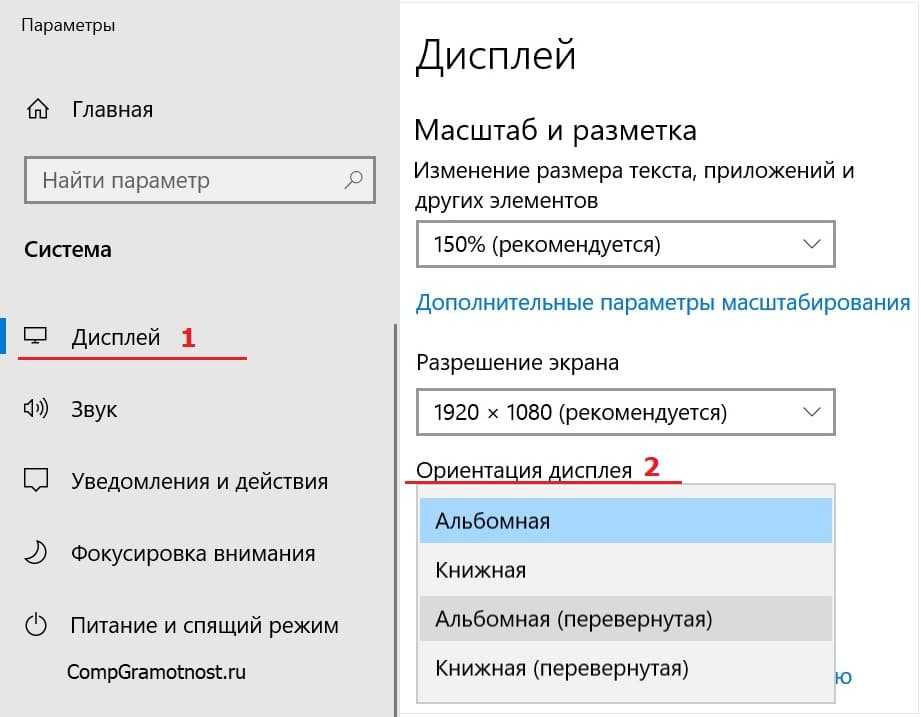 Отключить переворот изображения в них можно средствами операционной системы Windows 10 в пункте «Параметры экрана».