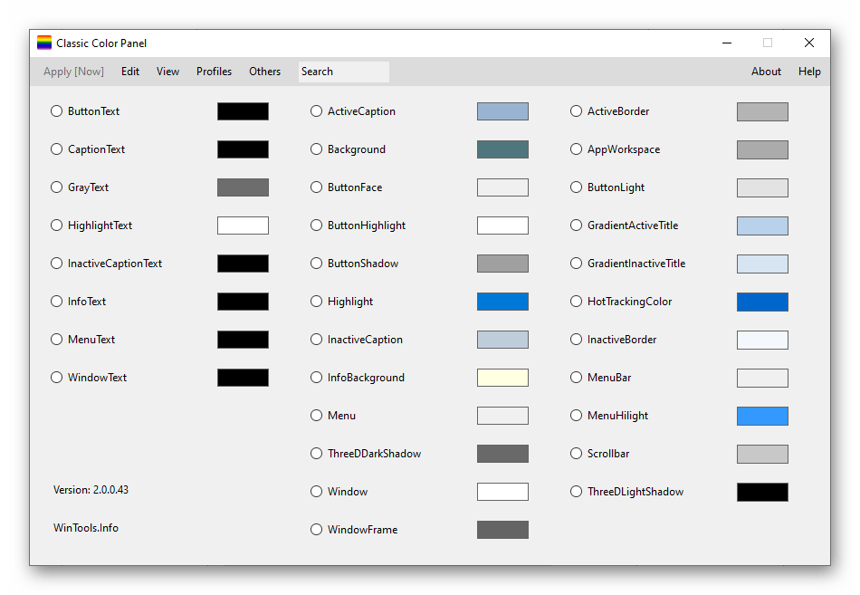 В самой программе Classic Color Panel ознакомьтесь с присутствующими пунктами и решите, цвет каких элементов вы хотите изменить.