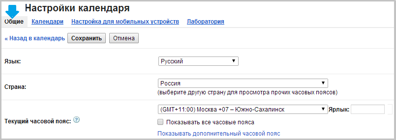 Чтобы настроить часовой пояс, связанный с аккаунтом Календаря Google, выполните следующие действия: