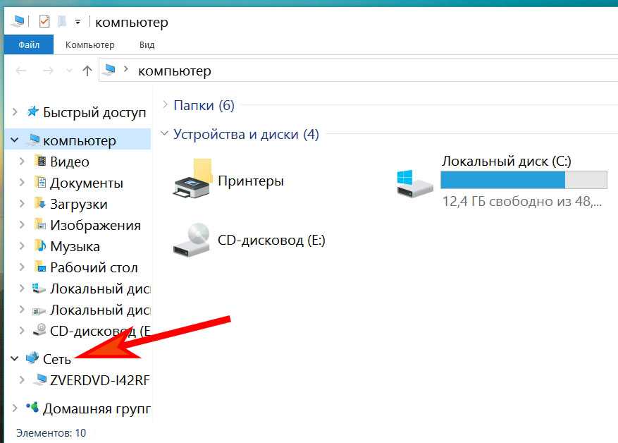 После разрешения общего доступа рекомендуется перезагрузить компьютер, чтобы настройка сети Windows 10 завершилась корректно. При следующем включении в проводнике появится раздел «Сеть», в котором будут отображаться компьютеры, между которыми установлено соединение.