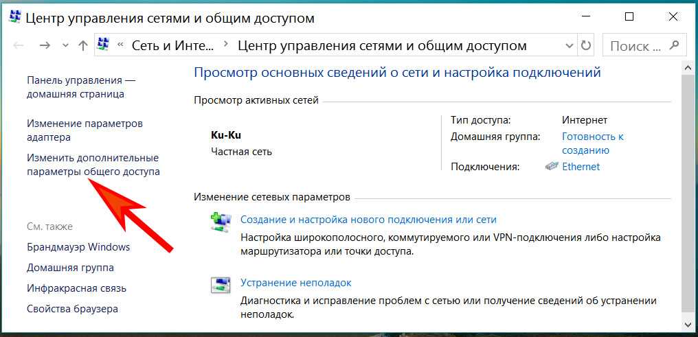 - Слева от основного окна, следует выбрать «изменение дополнительных параметров».