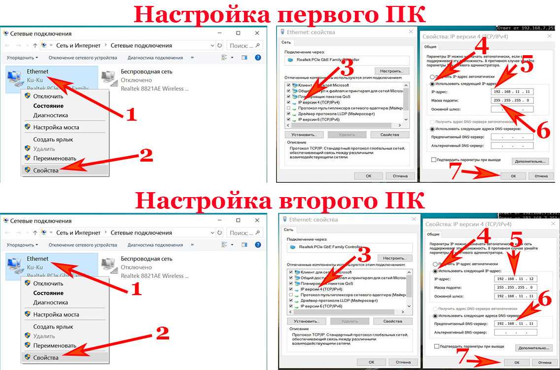 Этого уже достаточно если компьютеры соединены кабелями через роутер. Но если же они соединены напрямую, следуют провести ряд дополнительных настроек. Делаем следующее: