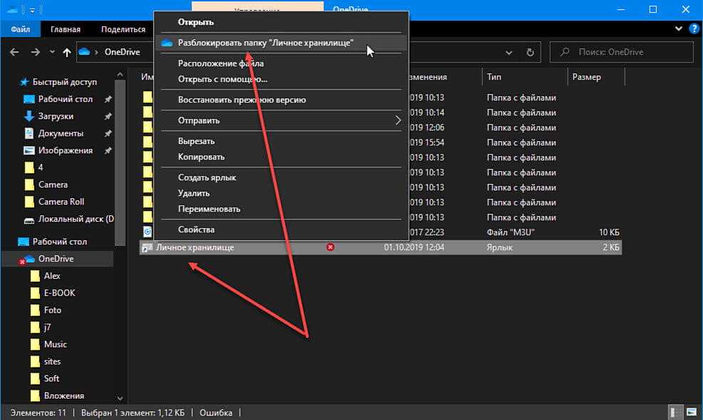 Шаг 1: С помощью Проводника откройте OneDrive выберите папку «Личное хранилище».