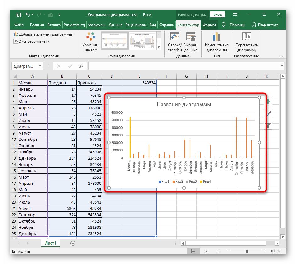Дважды щелкните левой кнопкой мыши по понравившемуся варианту, после чего он автоматически добавится на лист, а вы сможете перейти к дальнейшему редактированию диаграммы.