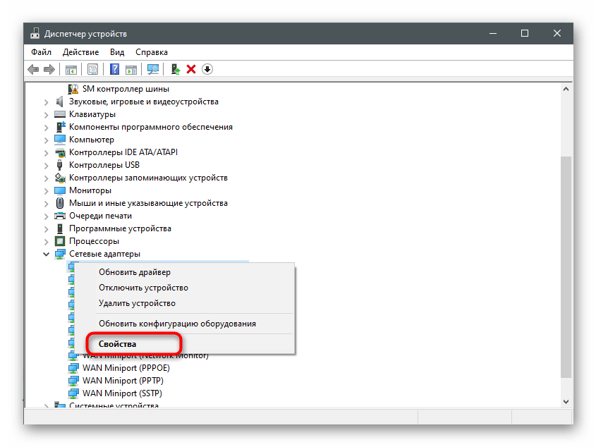 - Находясь в «Диспетчере устройств», разверните «Сетевые адаптеры», найдите там строку, связанную с Xbox One, и кликните по ней ПКМ. Из контекстного меню выберите пункт «Свойства».