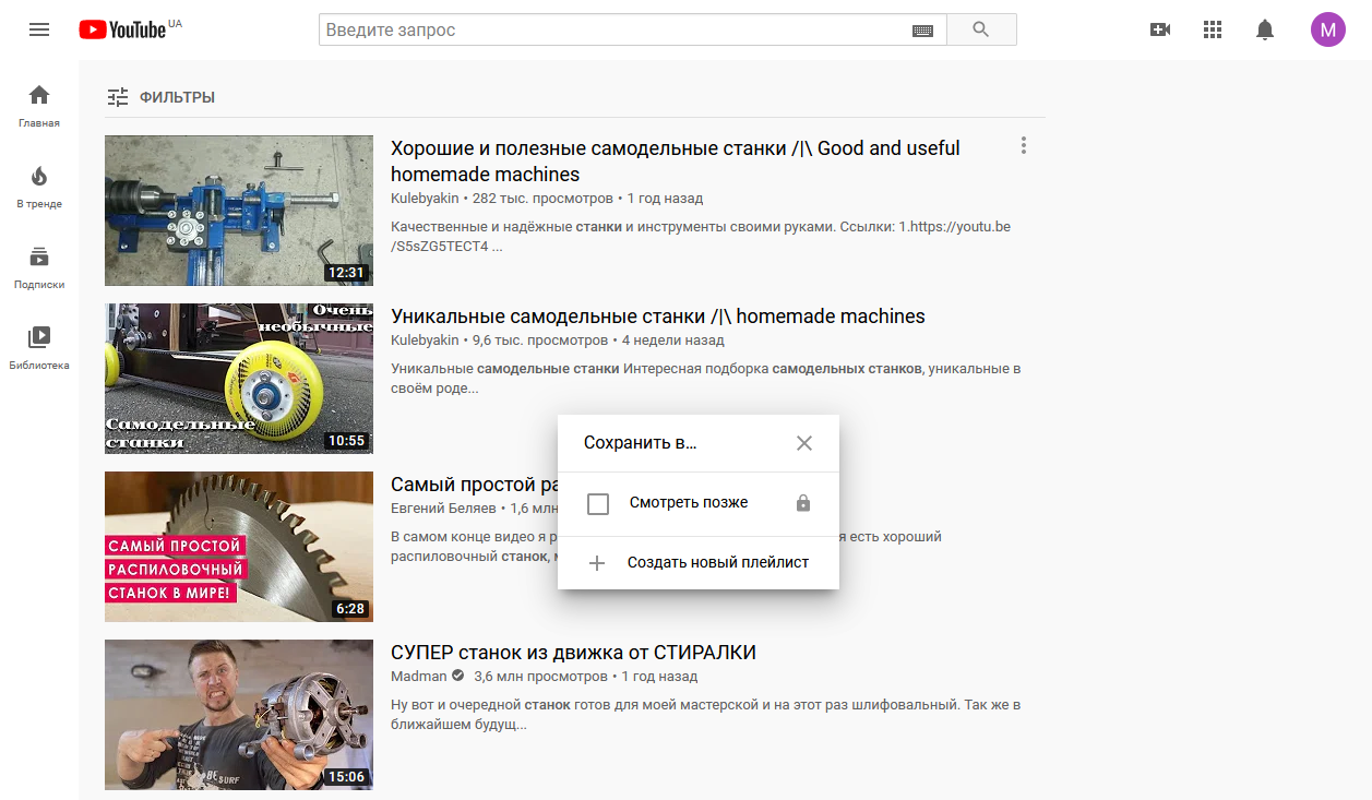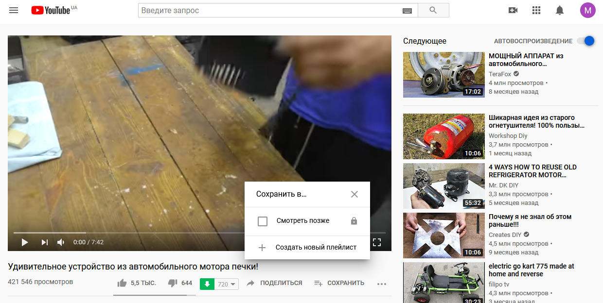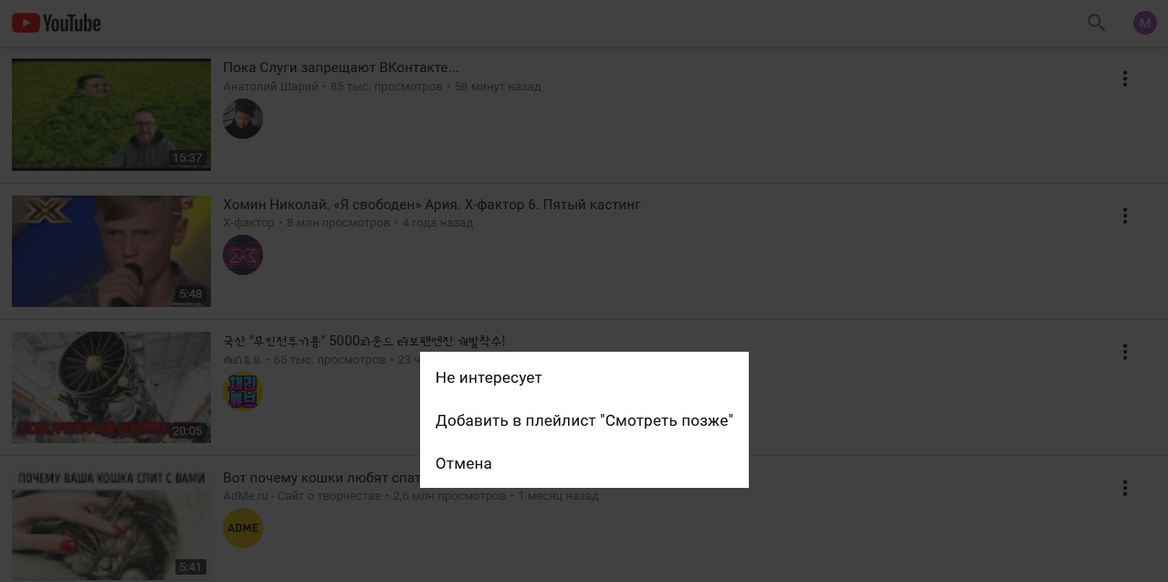 Если укажете первый вариант, ролик появится в списке «Смотреть позже».