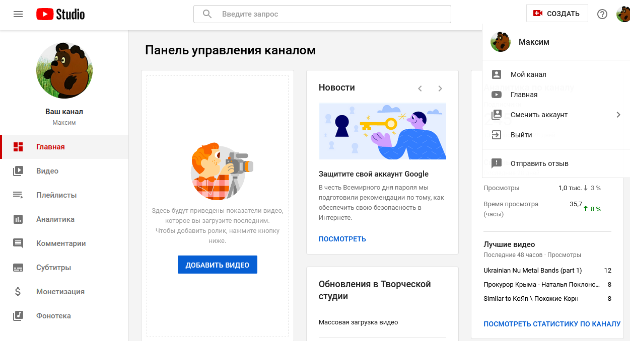Сделать новый плейлист на Ютубе можно через «Панель управления каналов».