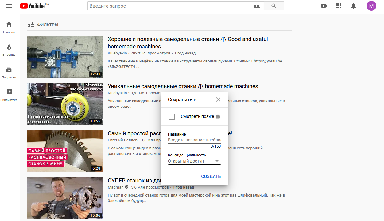 Все плейлисты в Ютубе находятся в разделе «Библиотека», автоматически создаётся три их вида: