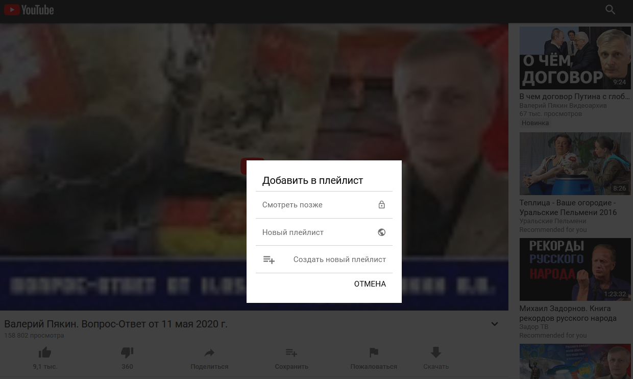 Третий способ: под роликом в Ютубе кликните «Сохранить» и укажите нужный плейлист или добавьте контент в новый.