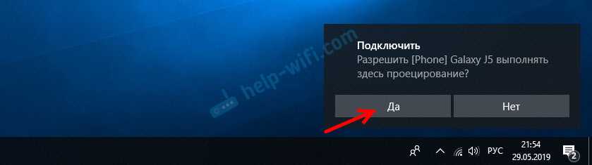 На компьютере нужно подтвердить подключение телефона для выполнения проецирования.