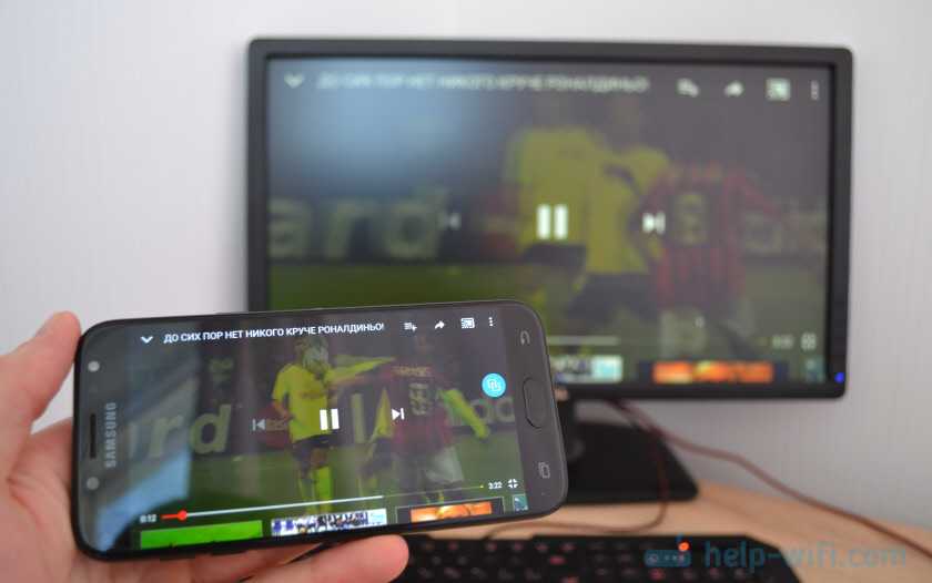 Звук с телефона так же транслируется на компьютер. Управлять беспроводной трансляцией изображения по Miracast нужно на телефоне. Там для этого отображается специальная иконка на экране. Можно приостановить трансляцию, сменить устройство, или отключиться от компьютера.