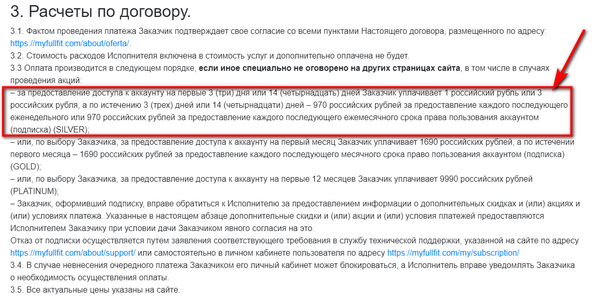 Все дело в том, что очень многие новые пользователи по своей невнимательности попадают в эту ловушку. Стоимость подписки Silver равна 985 рублей за одну неделю, но при этом действует акция, согласно которой вы получаете пробный период по этому тарифу на три дня всего за один рубль.