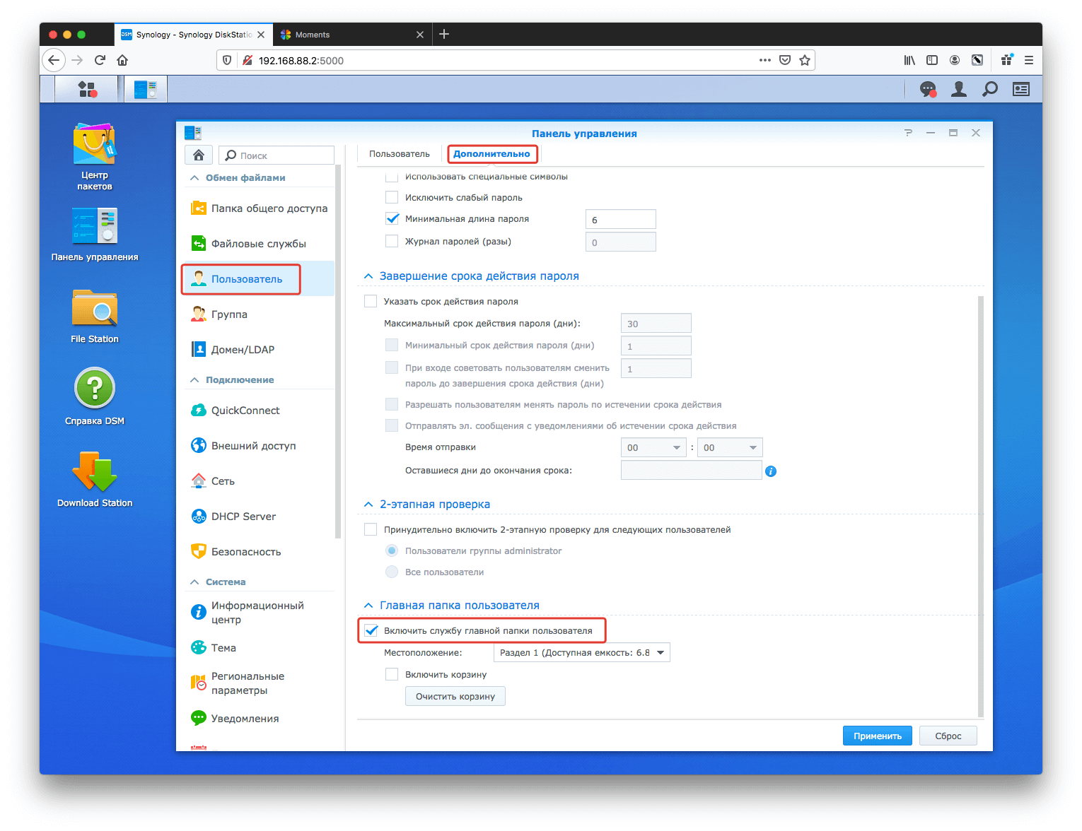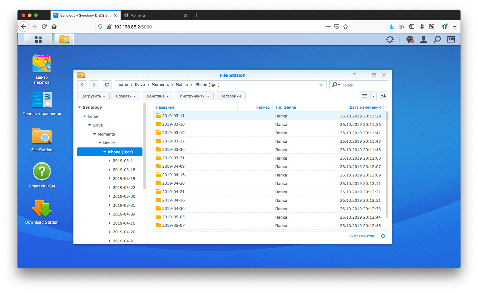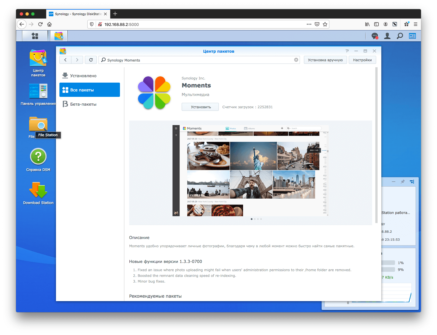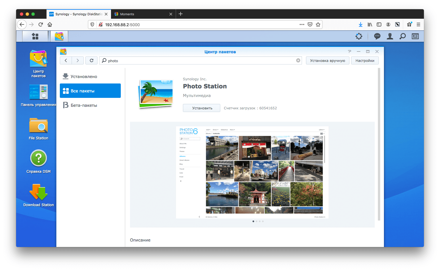 Данное приложение, как и «Synology Moments», предварительно нужно установить на NAS:
