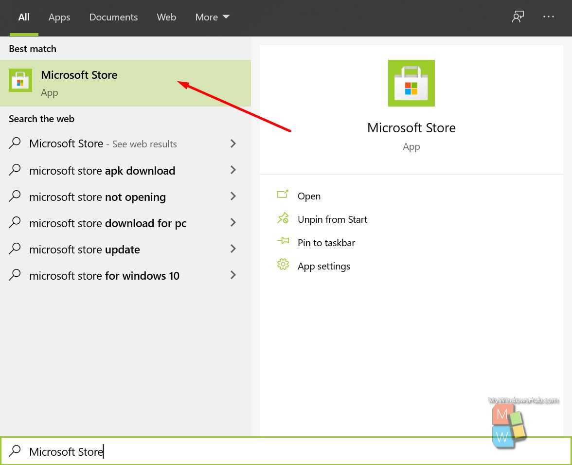 Search for the “Microsoft Store” keyword and open the application as mentioned below,
