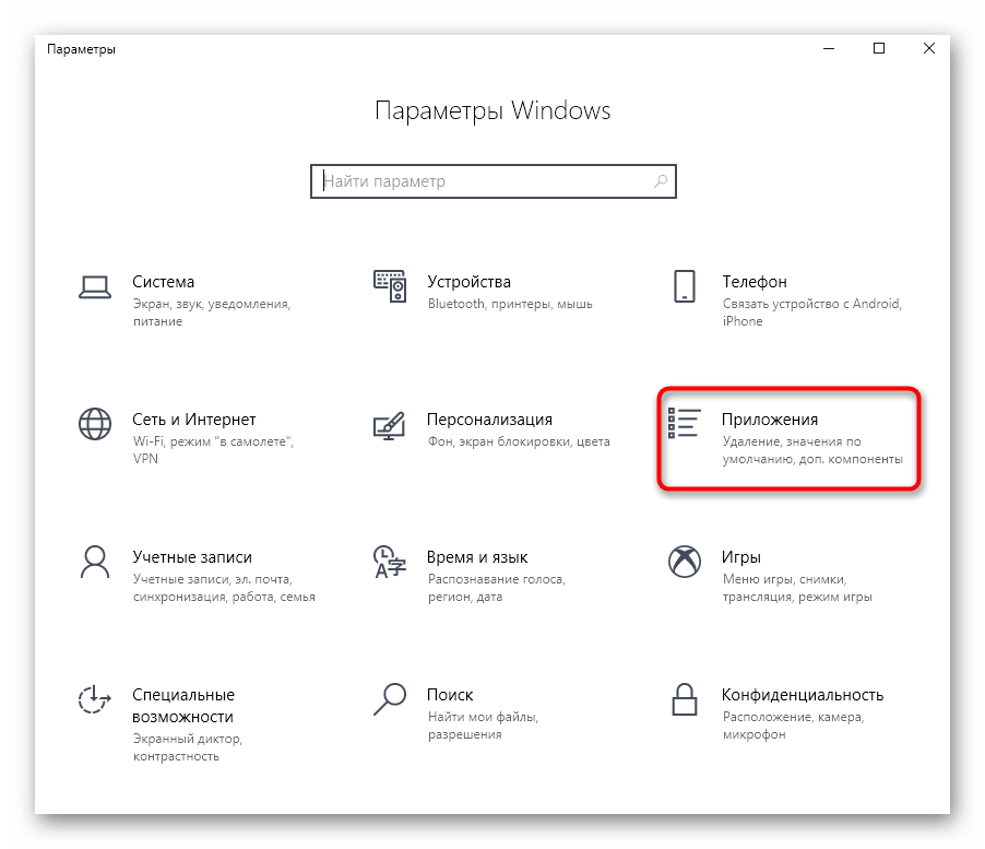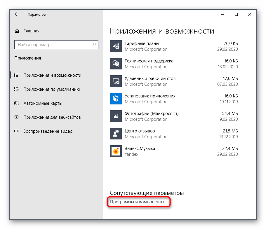 Опуститесь вниз по списку, где найдите надпись «Программы и компоненты», а затем кликните по ней.