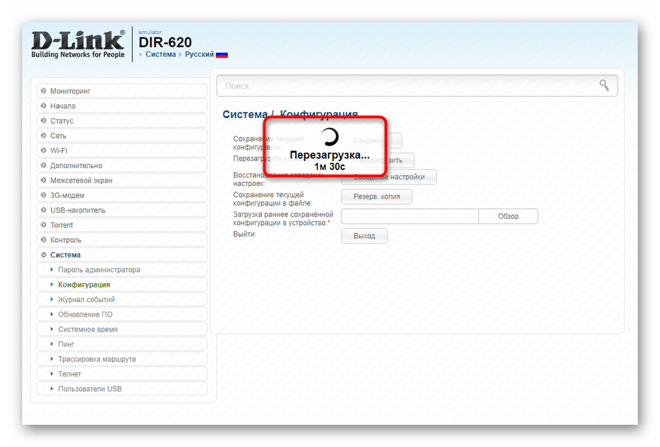 Дождитесь завершения перезапуска, а затем переходите к следующим действиям с веб-интерфейсом.