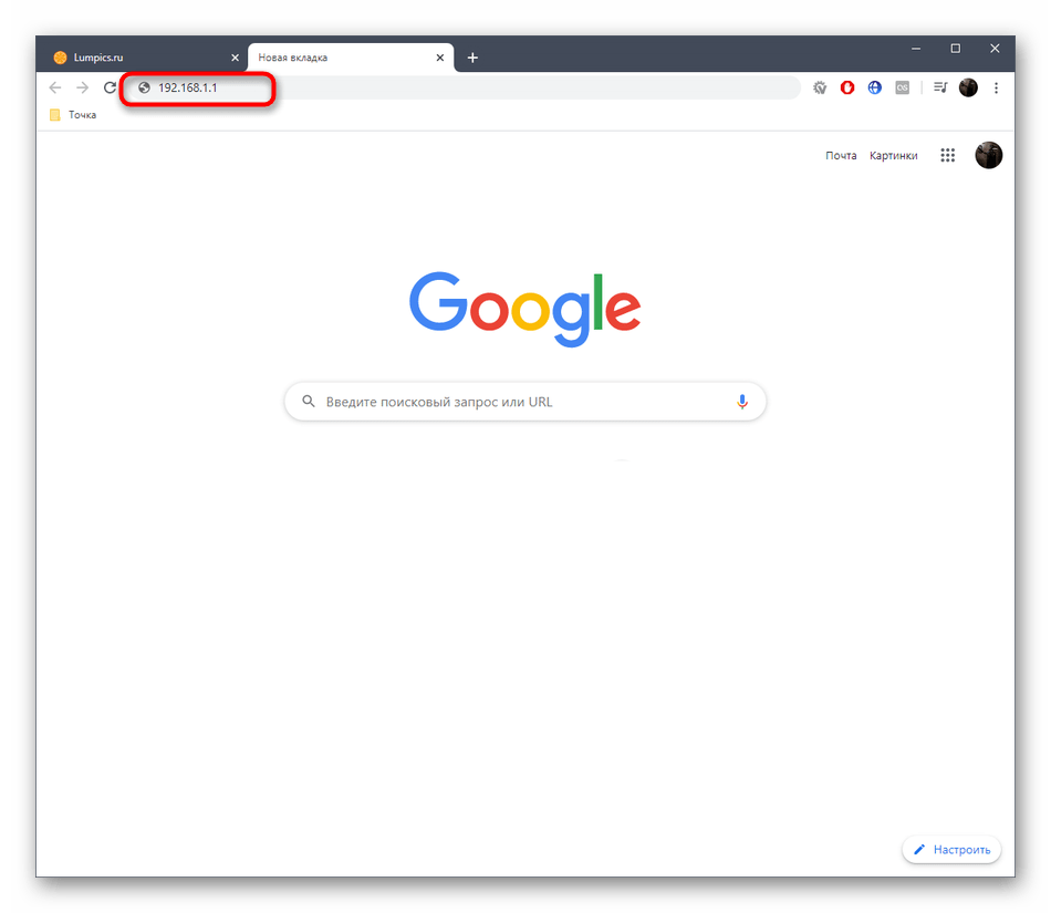 - Открыть веб-браузер (можно использовать любой, но лучше Opera или Google Chrome), в его поисковой строке ввести 192.168.0.1 (либо в конце 1.1), далее на клавиатуре нажать клавишу Enter.