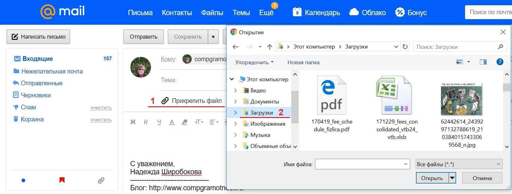 Как прикрепить к письму Майл ру файл, находящийся в Загрузках