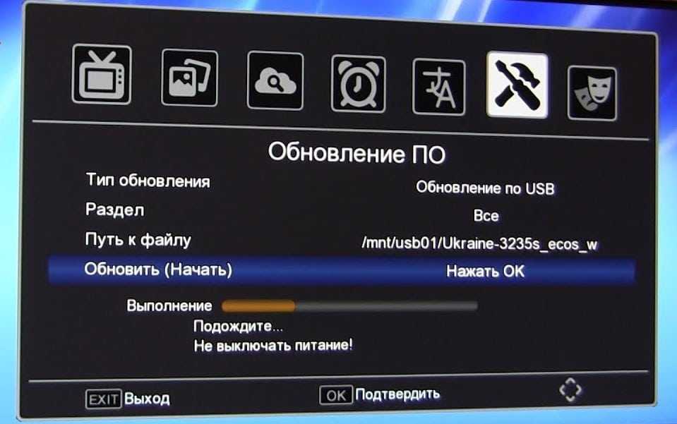 Прошивать можно как тюнер, так и телевизор, но чаще приходится это делать для спутникового ресивера или обычной ТВ приставки. Процедура может отличаться у разных производителей, но в основном выглядит приблизительно одинаково: