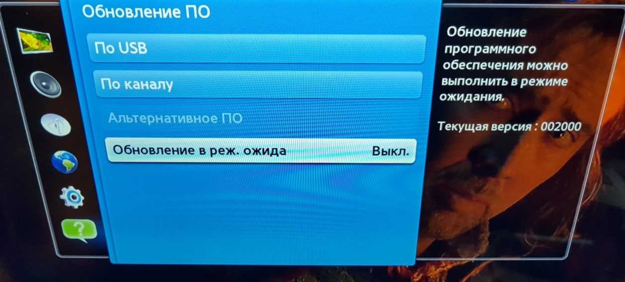 В случае с телевизором все выглядит подобным образом, но все равно действия отличаются. Опять же на примере Samsung кратко рассмотрим перепрошивку: