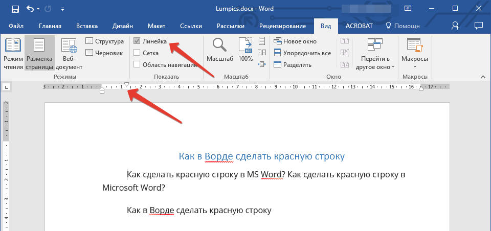 То есть возможность найти ее по пути: Вид —> Показать —> Линейка (отметить галочкой). Такое можно проделать в Майкрософт Ворд.