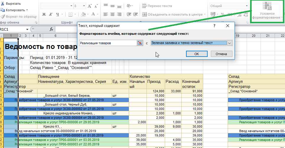Рассмотренным ранее способом не всегда удобно пользоваться. Применяя его нельзя использовать рабочее пространство. Поэтому предлагаю рассмотреть альтернативный способ, который предполагает использование условного форматирования.