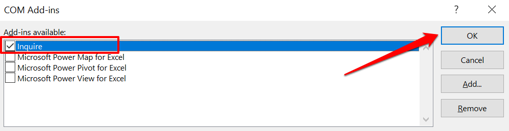 Примечание. Если вы не найдете флажок «Запросить» на странице надстроек COM, ваша версия Excel или Office не поддерживает сравнение электронных таблиц. Или, возможно, администратор вашей организации отключил эту функцию. Установите версии Office с предварительно установленным средством сравнения электронных таблиц или обратитесь к администратору вашей организации.