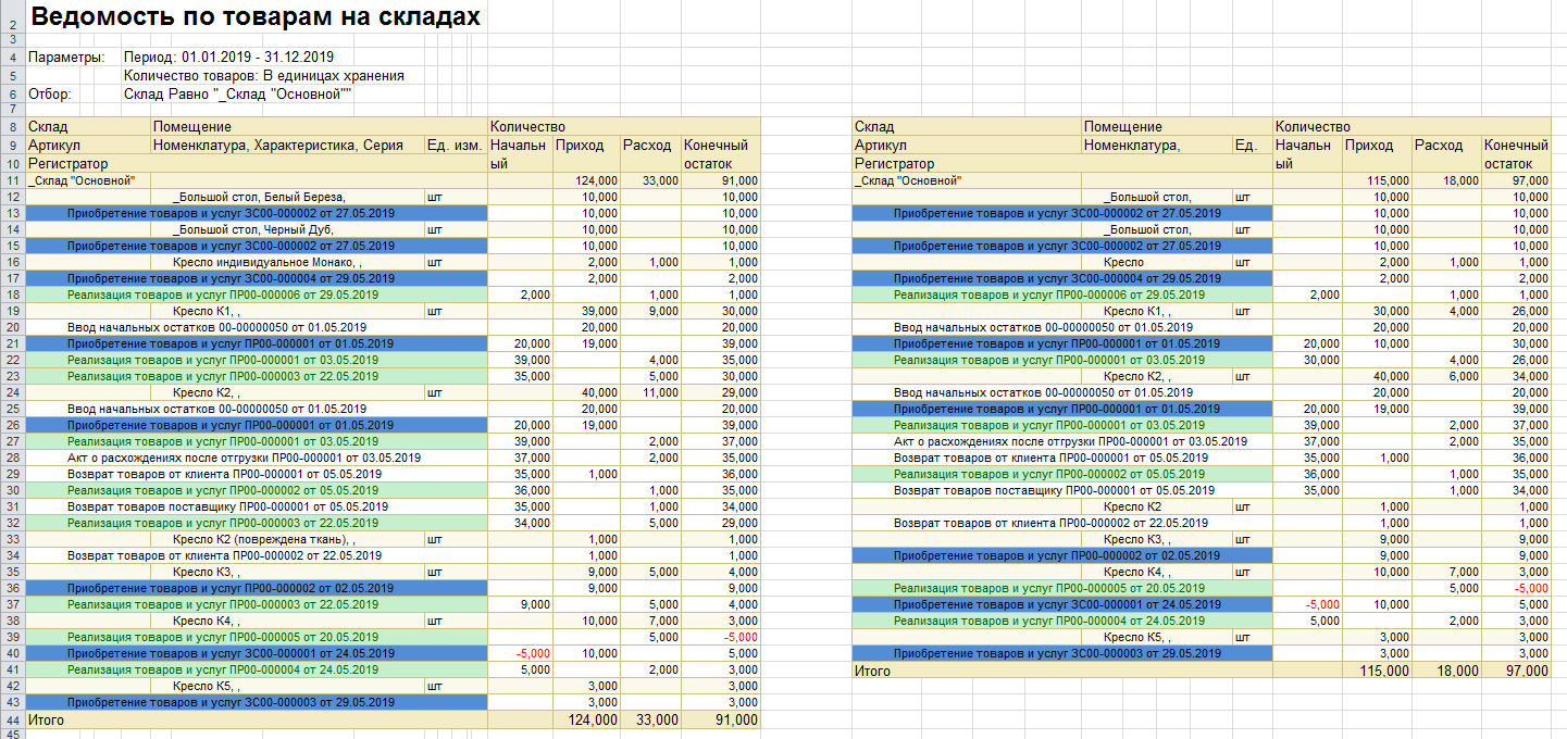 При этом в таблице выводится информация о наличии совпадений или отличий.
