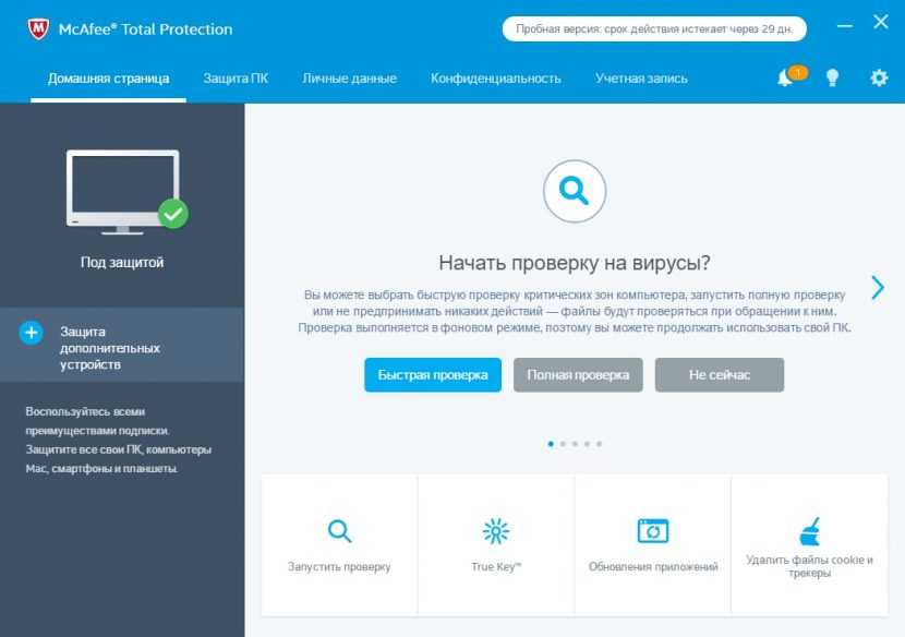 Отсутствует сканер уязвимостей и VPN. Последний в антивирусах встречается не так часто, а вот сканеры уязвимостей бывают значительно чаще. Таким образом, это можно считать недостатком McAfee Total Protection.