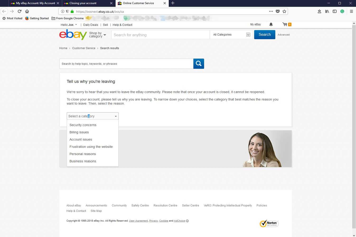 - Подтвердить желание удалить аккаунт на Ebay. Нажать «Выбрать один», выбрать пункт «Закройте страницу».