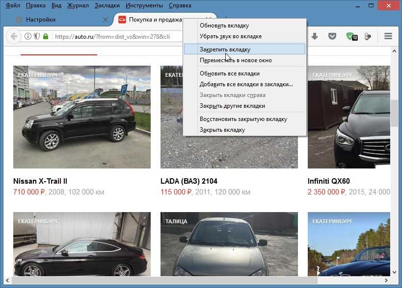 . Закрепив все вкладки нужно открыть настройки браузера.