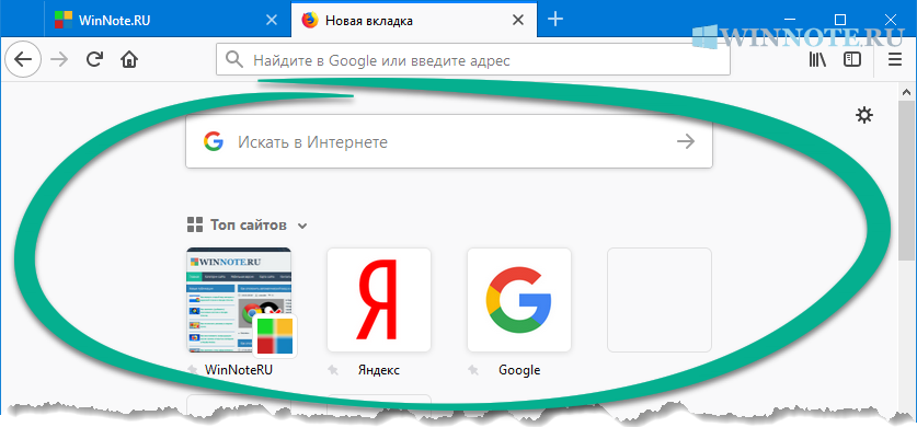 Настройка Домашней страницы Firefox (по умолчанию)