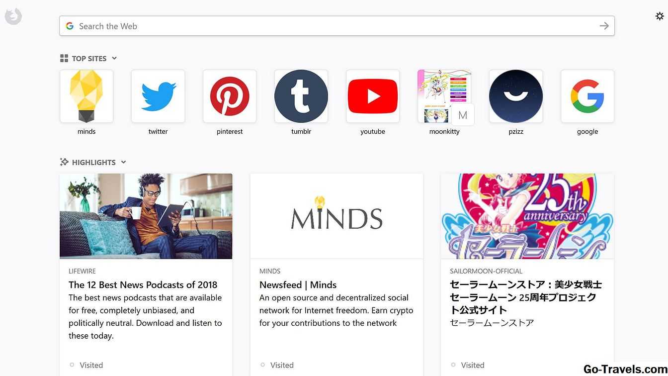 Параметр Firefox Home homepage загружает специальный экран в браузере Firefox при его открытии. На этом экране отображаются небольшие значки для некоторых из ваших наиболее посещаемых веб-сайтов, более подробные предварительные просмотры страниц, которые вы недавно посетили или сохранили, и рекламные блоки, называемые фрагментами, созданными Firefox и связанными с ним компаниями.
