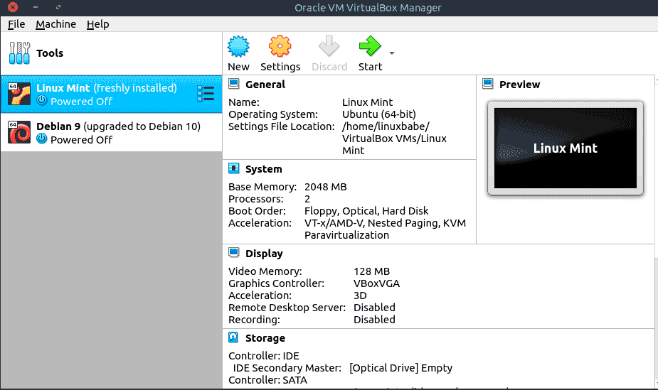 Вернитесь на экран VirtualBox Manager, выберите виртуальную машину Linux и нажмите «Начать», чтобы начать загрузку виртуальной машины