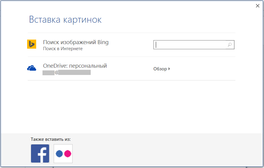 Вставляете картинки из Facebook или Flickr, установив связь между вашими аккаунтами через опцию Изображения из Интернета во вкладке Вставить.