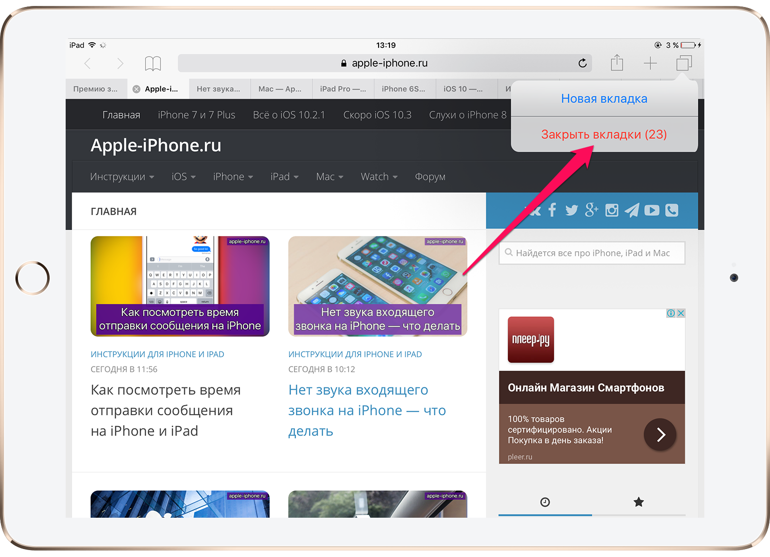Как закрыть все открытые вкладки на айфоне