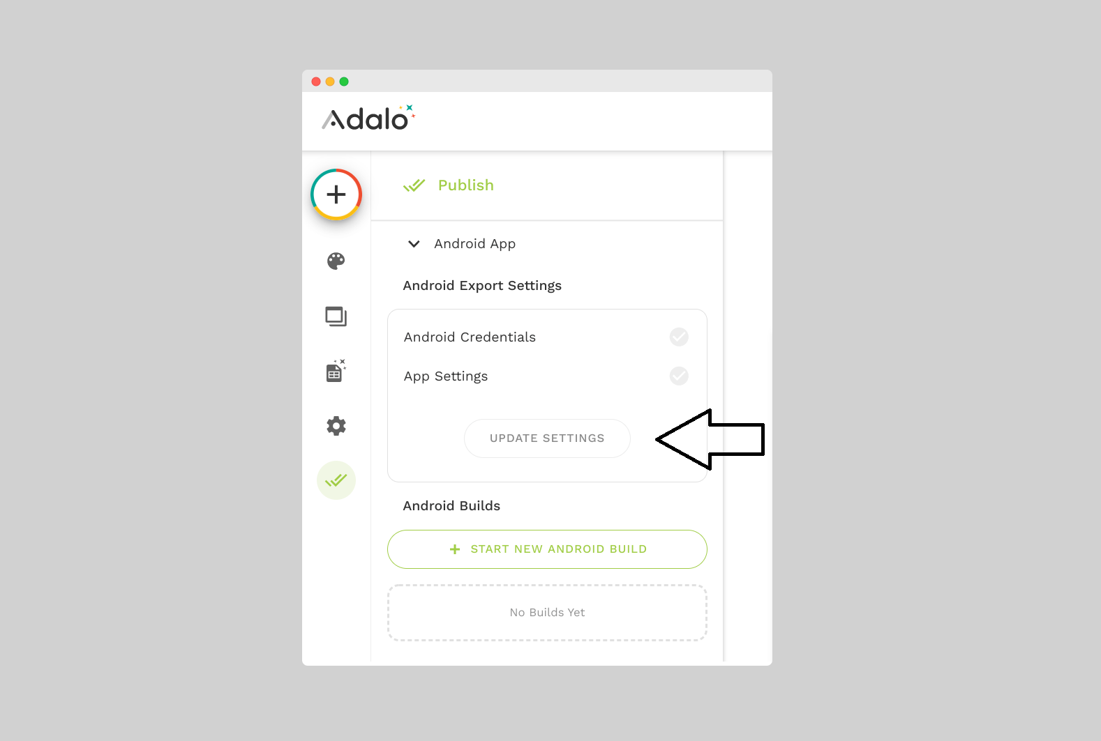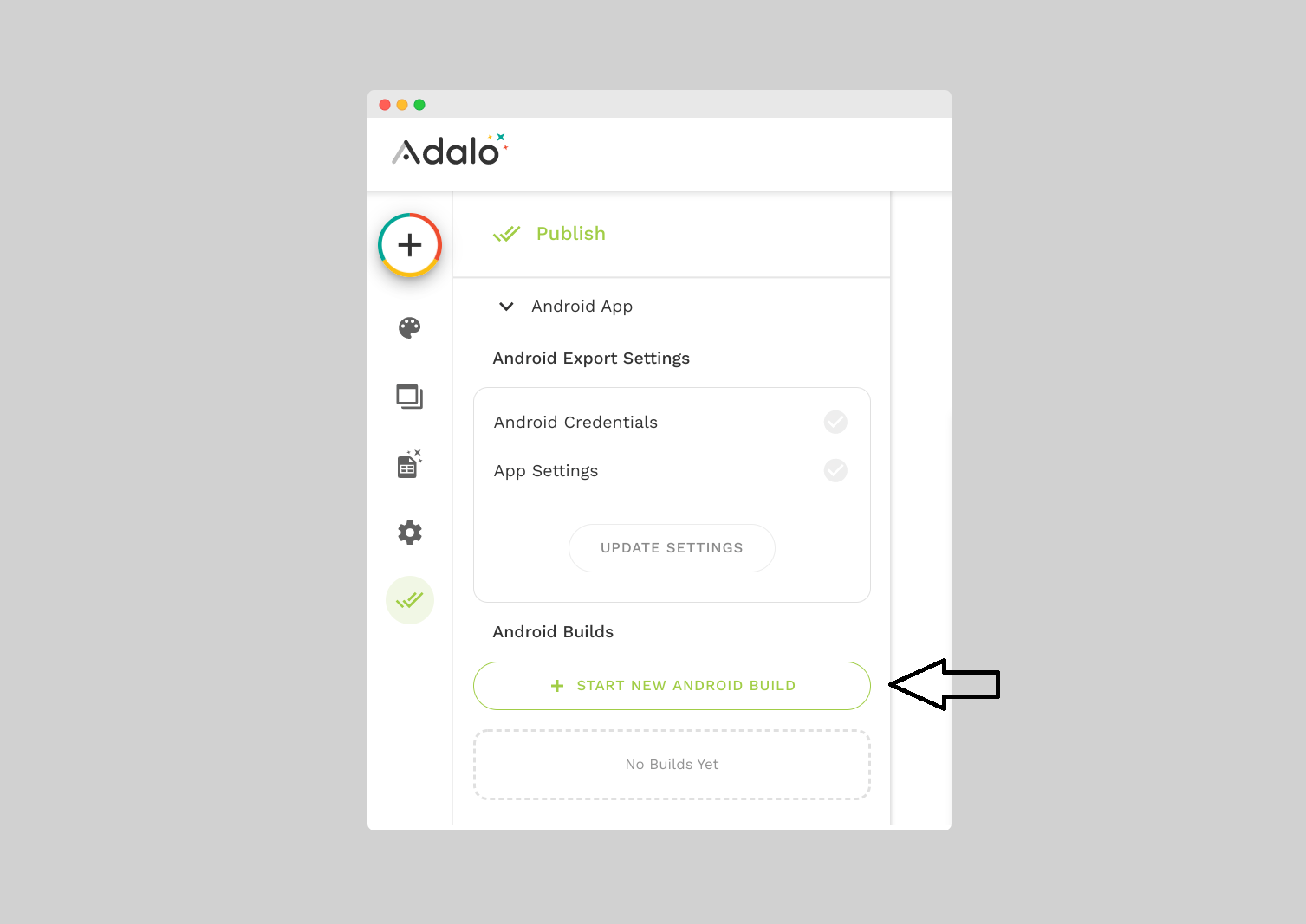 1. В Adalo на панели инструментов слева выберите вкладку Publish.