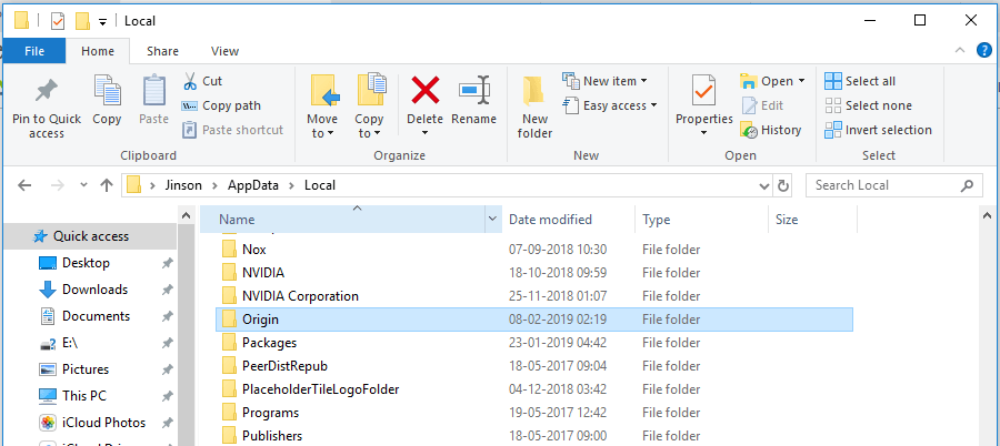 Шаг 6: Откройте Local Folder, и вы увидите папку с именем Origin. Удалите исходную папку.