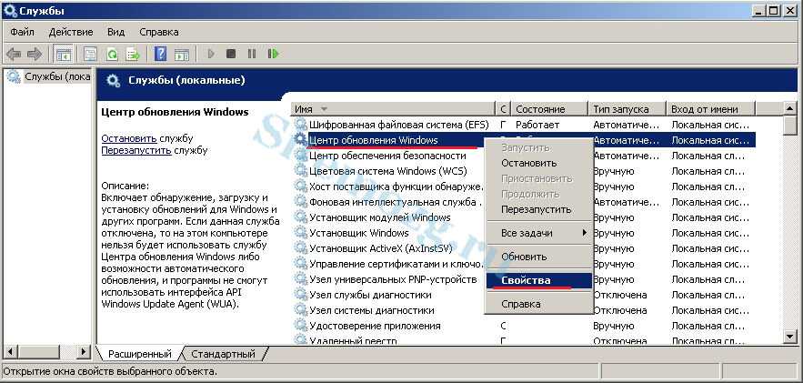 Найдите «Центр обновления Windows» и отключите его через контекстное меню (правой кнопкой мыши) в свойствах.