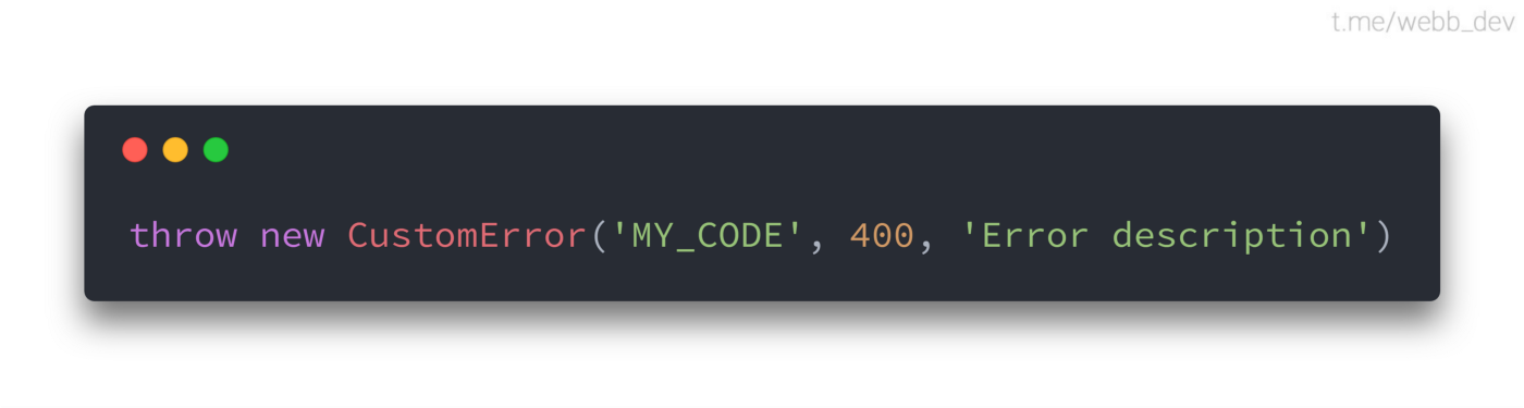 Выражение может быть объектом или значением любого типа данных. Однако лучше использовать объекты, желательно со свойствами и . Встроенный в JavaScript конструктор предоставляет удобный способ создания объекта ошибки. Давайте посмотрим на некоторые примеры: